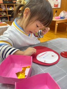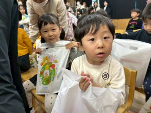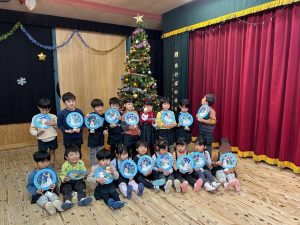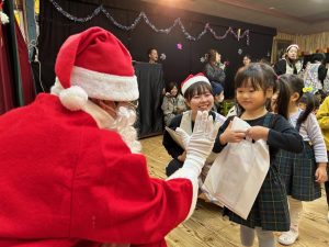 12日(金)は楽しみにしていたクリスマス会でした🔔サンタさんからプレゼントをもらうと目をキラキラさせて,とても嬉しそうでした🎅
