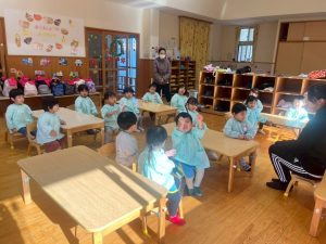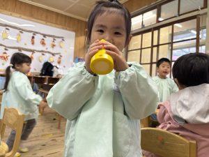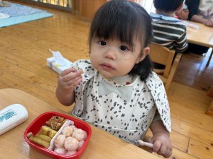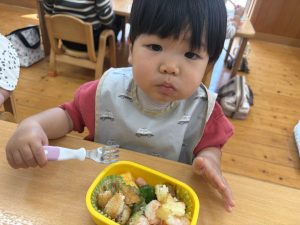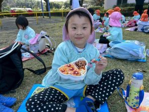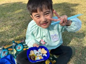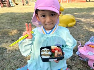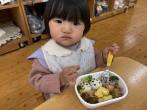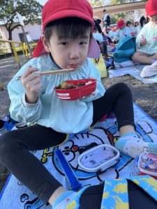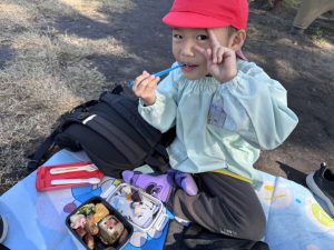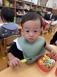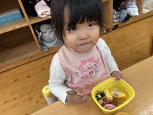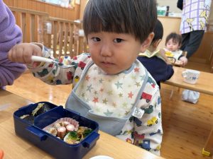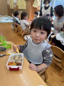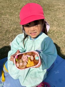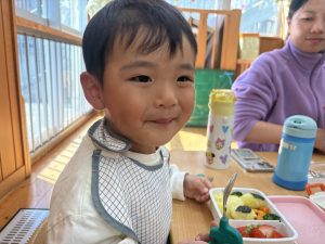 愛情弁当を作ってくれたお家の人に「ありがとう」の気持ちを込めて「いただきます」とみんなで楽しく食べました🍱