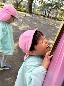 きく組からたんぽぽ組は吉野公園へ,さくら・ちゅうりっぷ組は近くの公園へ行きました‼