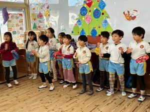 本日,終業式を行い2学期を無事に終えることができました。これも日頃より,園の活動にご理解,ご協力頂いている保護者の皆さまのお陰と心より感謝申し上げます。ありがとうございます(^^)