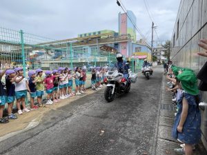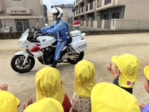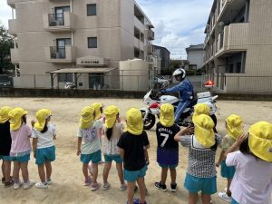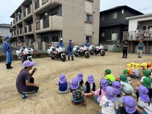 25日(木)は白バイ隊が幼稚園に来てくれました!!!!!!!!!!!!!!!