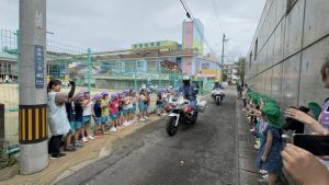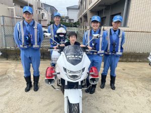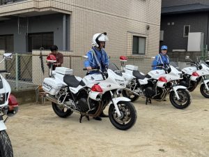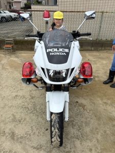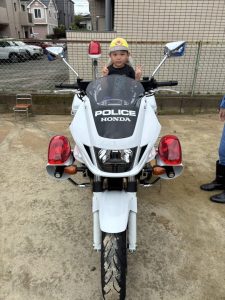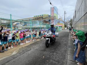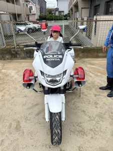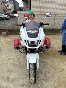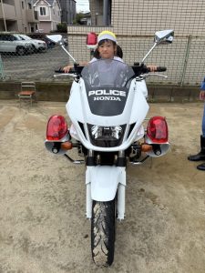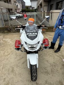 白バイが4台も並び,子どものみならず先生方も大興奮(≧▽≦)