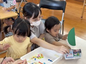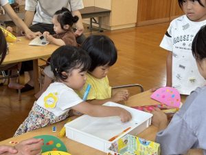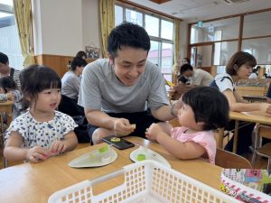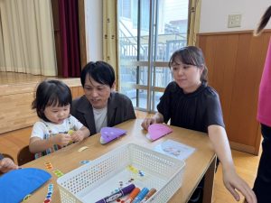 お父さんとお母さんと一緒に楽器作りを楽しんでいました♪