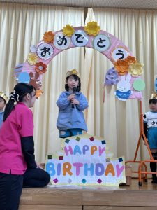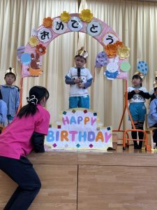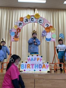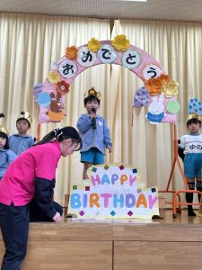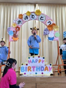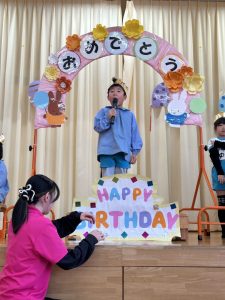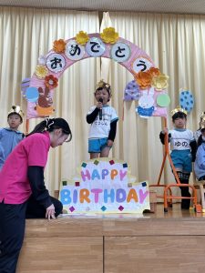 今年度の誕生日会も残り1回となりました。令和7年度も少しずつ終ろうとしていますが,1日1日をお友だちと大切にしながら日々を過ごしていきたいと思います(´・ω・)
