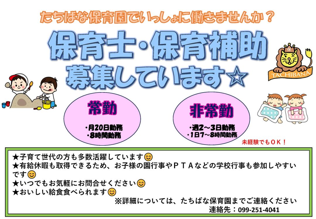 保育士・保育補助 募集しています☆