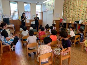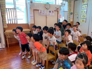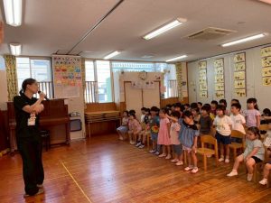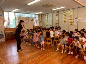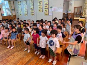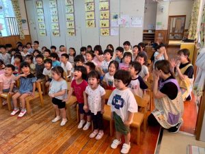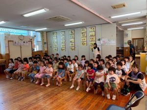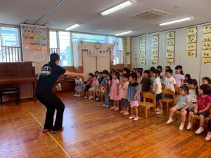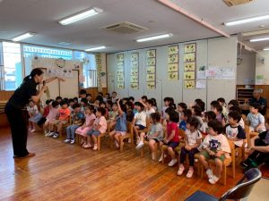 以上児さん 防犯教室 たちばな保育園 > たちばな写真館 > 以上児さん 防犯教室 2025.09.20 市役所の安心安全課の方が来られて、防犯教室が行われました。 子どもたちもしっかり話を聞いていましたよ!!