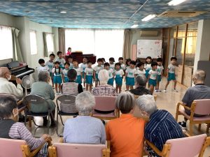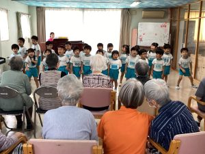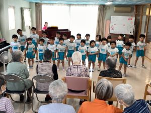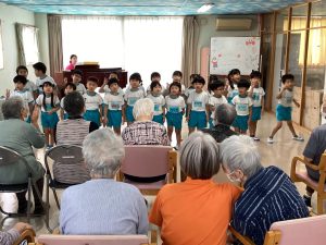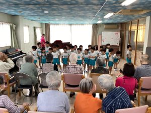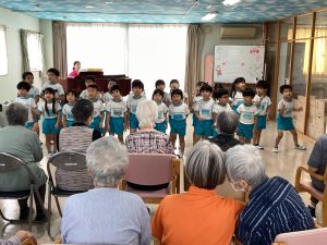 さくら組さんが「グループホーム ショコラうすき」を訪問し、デイケアを利用されている高齢者の方々と交流を楽しみました😊😊😊