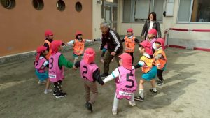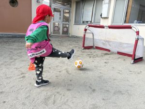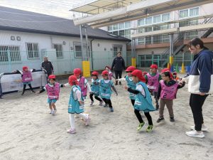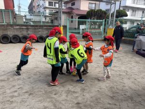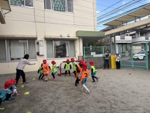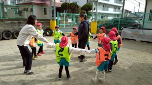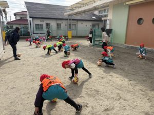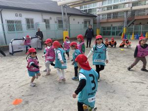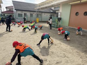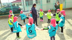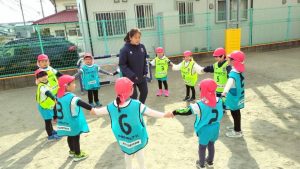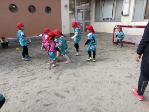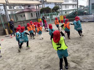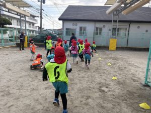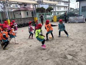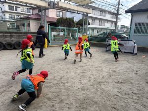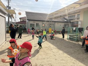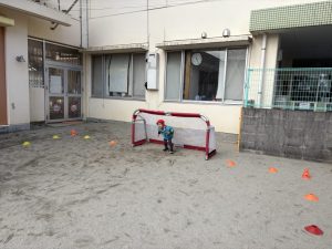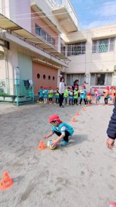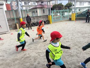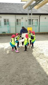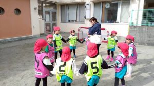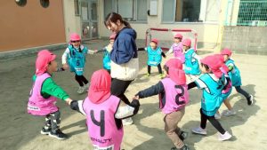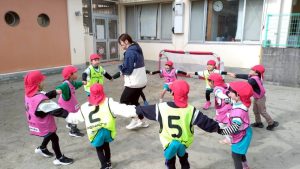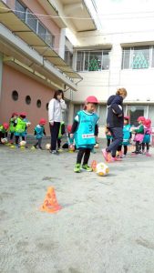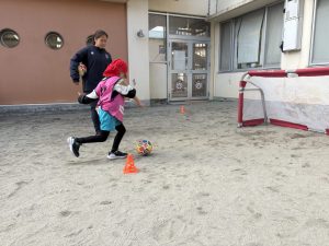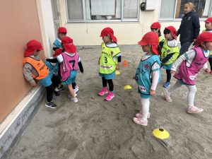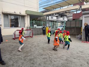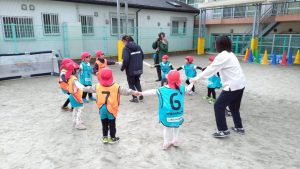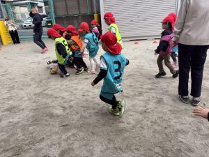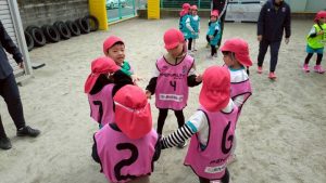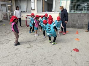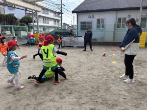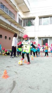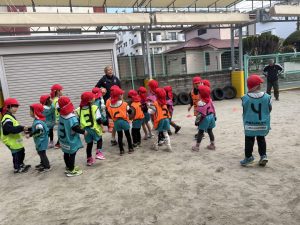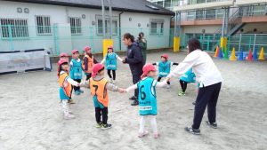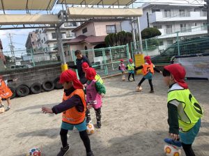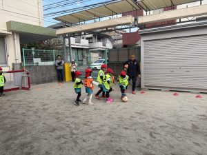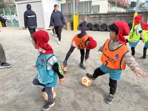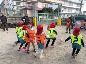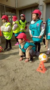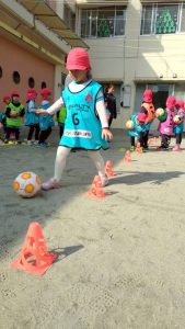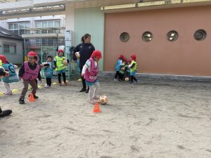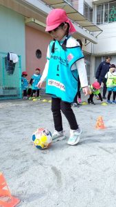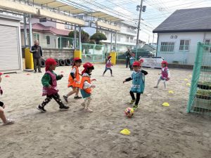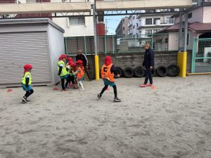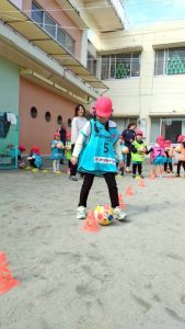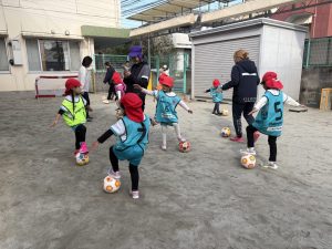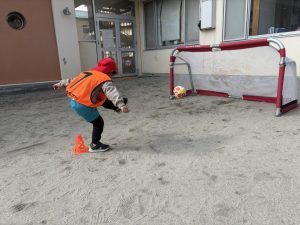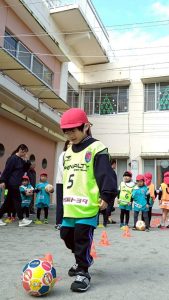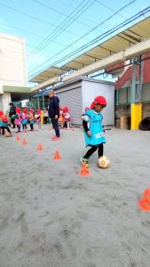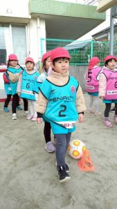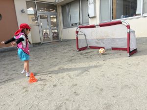 まずは体力作りから始まり、ボールを使った遊びを行ったあと、最後は試合をしました⚽サッカーが好きな子もそうでない子も楽しくサッカーを経験できました!”