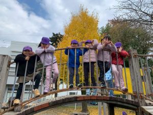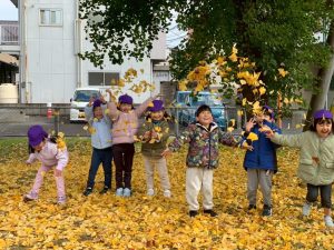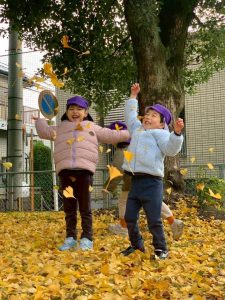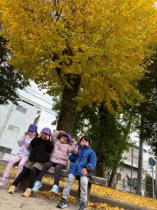 ひまわり組さん 散歩 たちばな保育園 > たちばな写真館 > ひまわり組さん 散歩 2025.12.25 ひまわり組さんが保育園近くの北公園へ行きました!! いちょうがきれいです‼️😄子どもたちの笑顔も✨