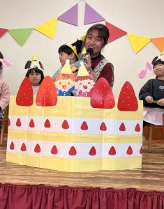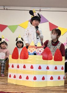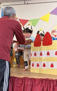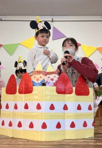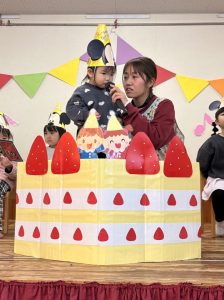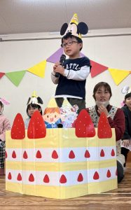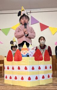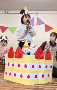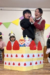 1月 誕生会 たちばな保育園 > たちばな写真館 > 1月 誕生会 2026.01.16 1月生まれの13名、前回お休みをしたお友だち1名、計14名のお友だちの誕生会が行われ、にぎやかにお祝いをしました🎊🎂🎊🎂🎊