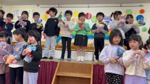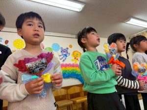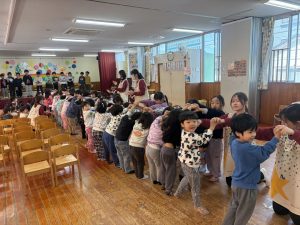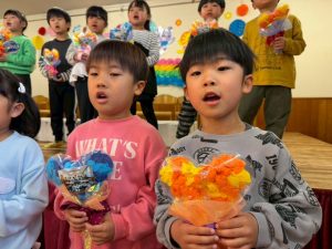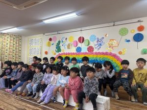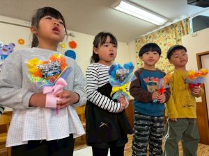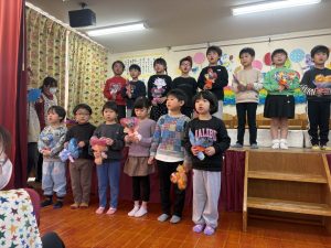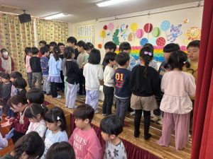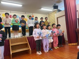 楽しい時間の中にも、年長さんとお別れを感じる場面もあり、子どもたちも職員も胸がじんわり温かくなる会でした。年長さんの成長を感じながら、みんな歌のプレゼントに感動でした😢